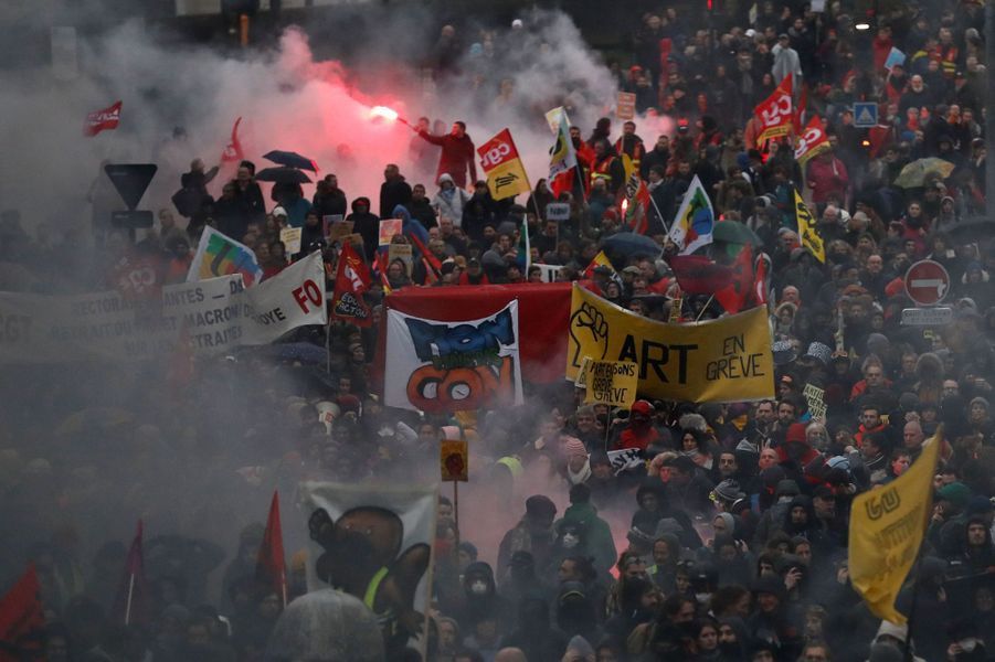 Au 36e jour de grève, la manifestation parisienne entre République et Saint-Augustin, près de la gare Saint-Lazare, a démarré vers 14H00. Derrière la banderole de tête ("Retraite par points: tous perdants ! Retraite à 60 ans: tous gagnants ! Macron retire ton plan "), Philippe Martinez (CGT) a dénoncé "l'attitude provocatrice" du gouvernement et émis "des doutes" sur la volonté de ce dernier de "discuter". A ses côtés, Yves Veyrier (FO) ou encore François Hommeril (CFE-CGC).