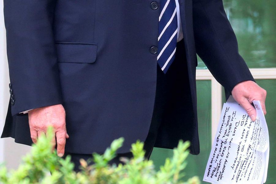 En mai dernier, avant de s'adresser à la presse, Donald Trump avait une nouvelle fois une note rédigée à la main évoquant les premières accusations dans ce dossier. «Ils veulent me destituer pour des actes qu'ils ont COMMIS», avait-il écrit sur un papier portant le nom de Nancy Pelosi, la présidente démocrate de la Chambre des représentants. «Je vais continuer à travailler pour le peuple américain», avait-il ajouté.
