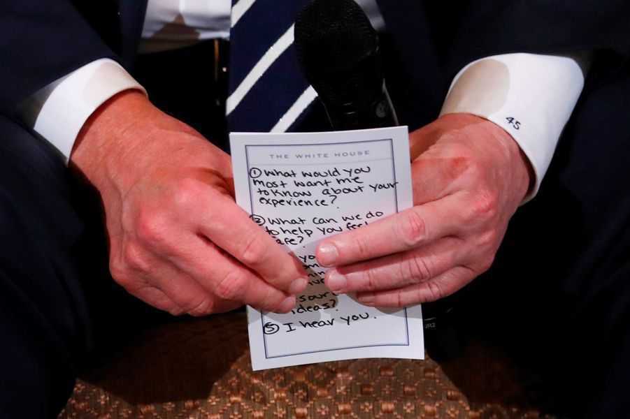 Ce n'est pas la première fois que ses écrits sont dans l'actualité : en février 2018, alors qu'il recevait des parents de victimes de la tuerie commise dans un lycée de Parkland (Floride), Donald Trump tenait entre ses mains une note le rappelant de faire preuve d'empathie vis-à-vis de ses hôtes. «Je vous comprends», était-il écrit en cinquième élément de langage.